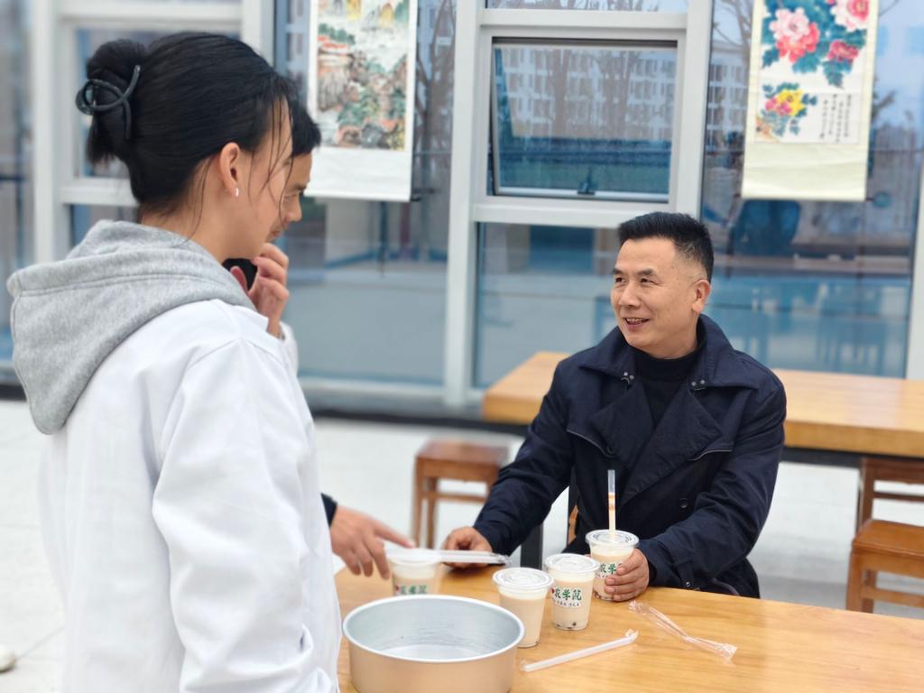 学工处处长但耀卿亲临活动现场,与同学们亲切交流,一起品尝新鲜出炉的热奶茶,分享立冬节气的民俗故事。欢声笑语中,师生情谊不断升温,每一杯奶茶都承载着校园的关怀与温暖。