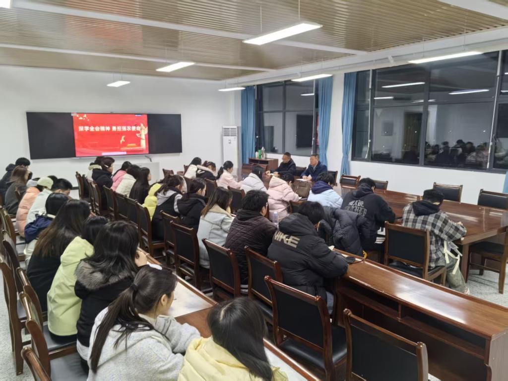 12月7日晚,农学院在高铁南路校区嘉禾楼会议室开展大学生学习贯彻党的二十届四中全会精神研讨会。农学院党总支书记金顺敬为大学生党员先锋队全体队员作专题辅导。