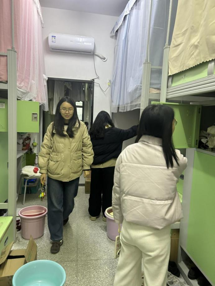 检查期间,辅导员们还与学生亲切交流,叮嘱学生要时刻绷紧安全这根弦,自觉遵守宿舍安全管理规定,养成良好的用电和生活习惯,共同维护寝室的安全与整洁。