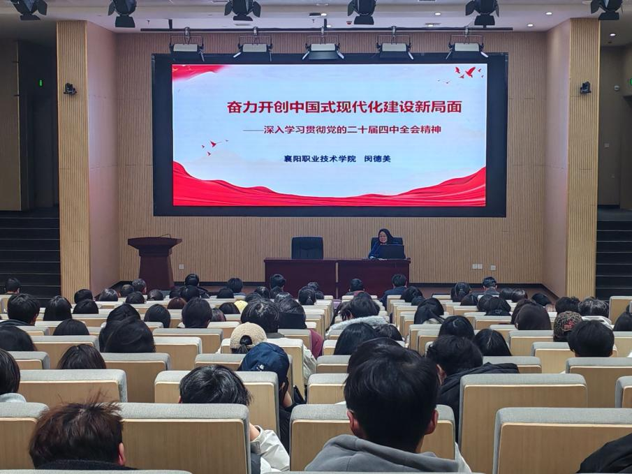 12月25日下午,农学院在高铁南路校区同济楼报告厅举行党的二十届四中全会精神专题宣讲会。会议邀请马克思主义学院闵德美教授主讲,农学院全体教职工、入党积极分子、学生干部参会聆听宣讲。