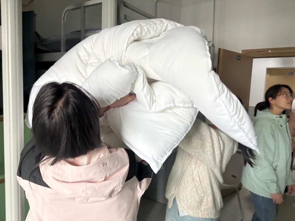 活动现场,在后勤人员的统一统筹与细致安排下,志愿者们迅速明确分工、各司其职。大家主动上手、默契配合,认真拆解床褥、规整物品、清理现场,面对繁琐的工作毫无怨言,以饱满的热情和踏实的作风投入到服务中。尽管任务繁重,但志愿者们始终保持严谨细致的态度,相互协作、互帮互助,高效推进各项工作,用汗水为校园后勤服务保障贡献青春力量。